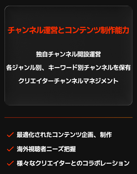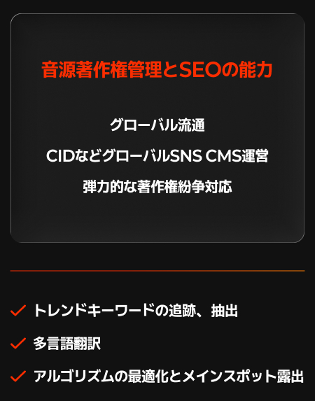 国内外のリスナーの多様な好みやニー ズを解釈してトレンディなミュージックコンテンツを制作し、積載適所に配置する