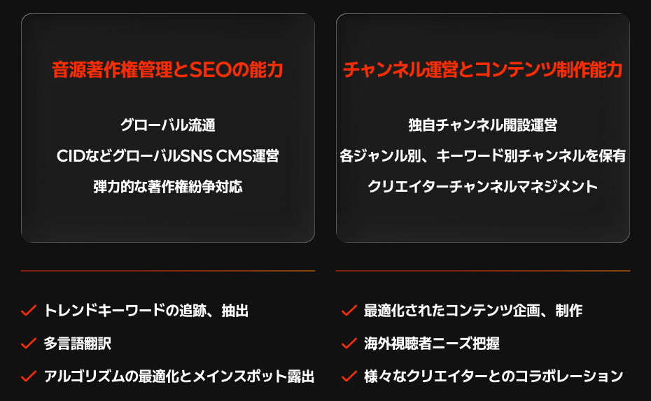 世界中のほとんどのプラットフォームに音源流通を進め、デジタルコンテンツ制作、マーケティングなど多様な技法を通じて